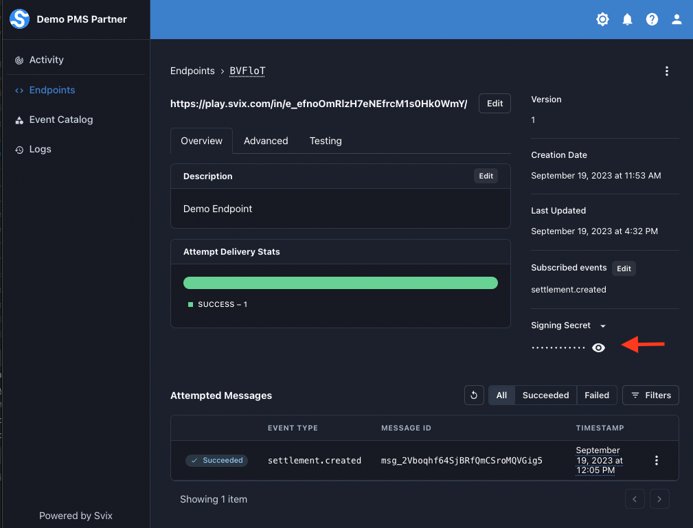 In the page for the endpoint you created you will be able to retrieve the signing secret: